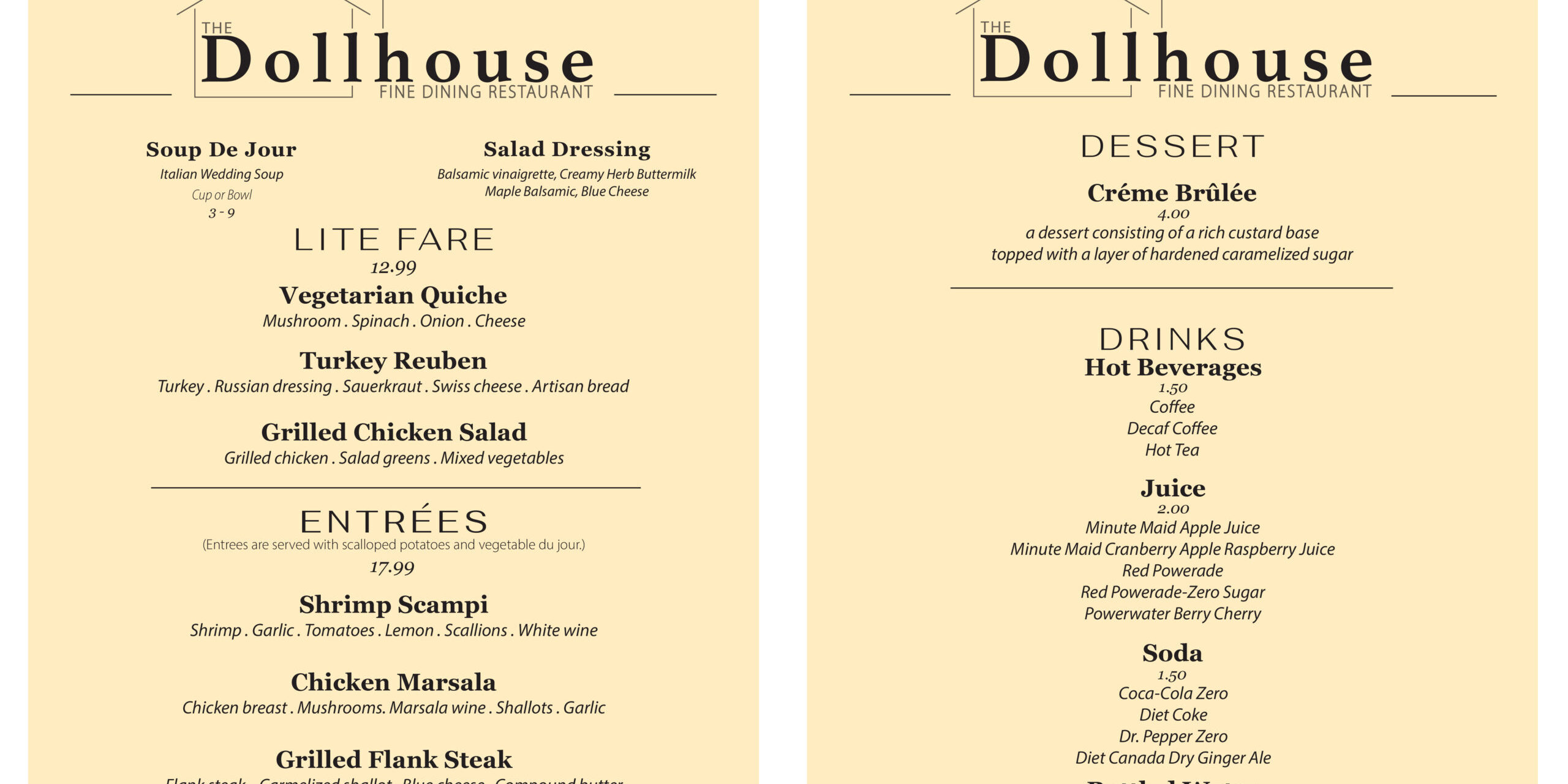 The Digital Arts second years were recently approached by Cosmetology and Culinary Arts about redesigning some of their business branding. Under the supervision of David Townsend, the class was divided into two groups. The group consisting of Lucas Johnson, Charlie Souza, Alexis Howland, and Carmen Decato tackled making a new logo and rack card for Cosmetology’s Salon at Stafford. The group consisting of Libby Langlois, Aiden Shuman-Gadbois, Dorian Lester, And Dominic Arbuiso redesigned the logo and menu for Culinary Art’s Dollhouse Restaurant.